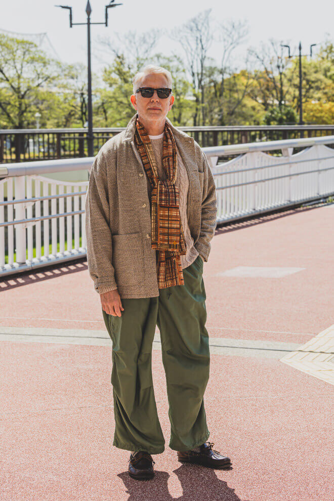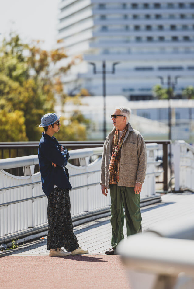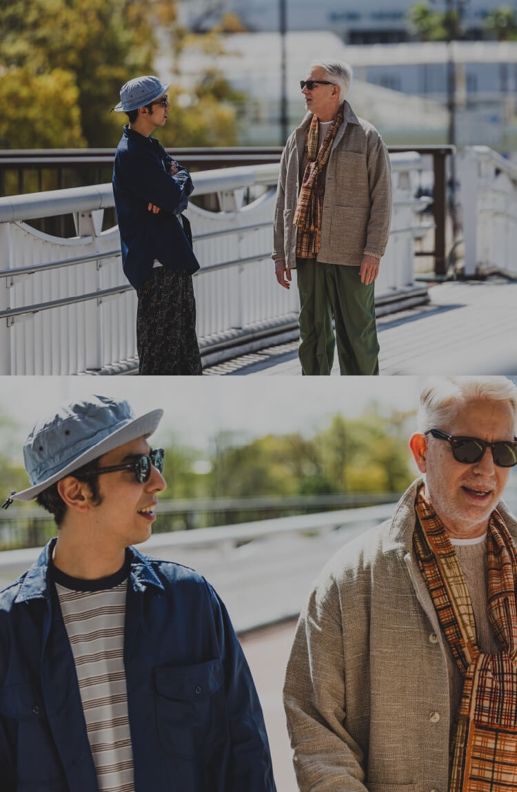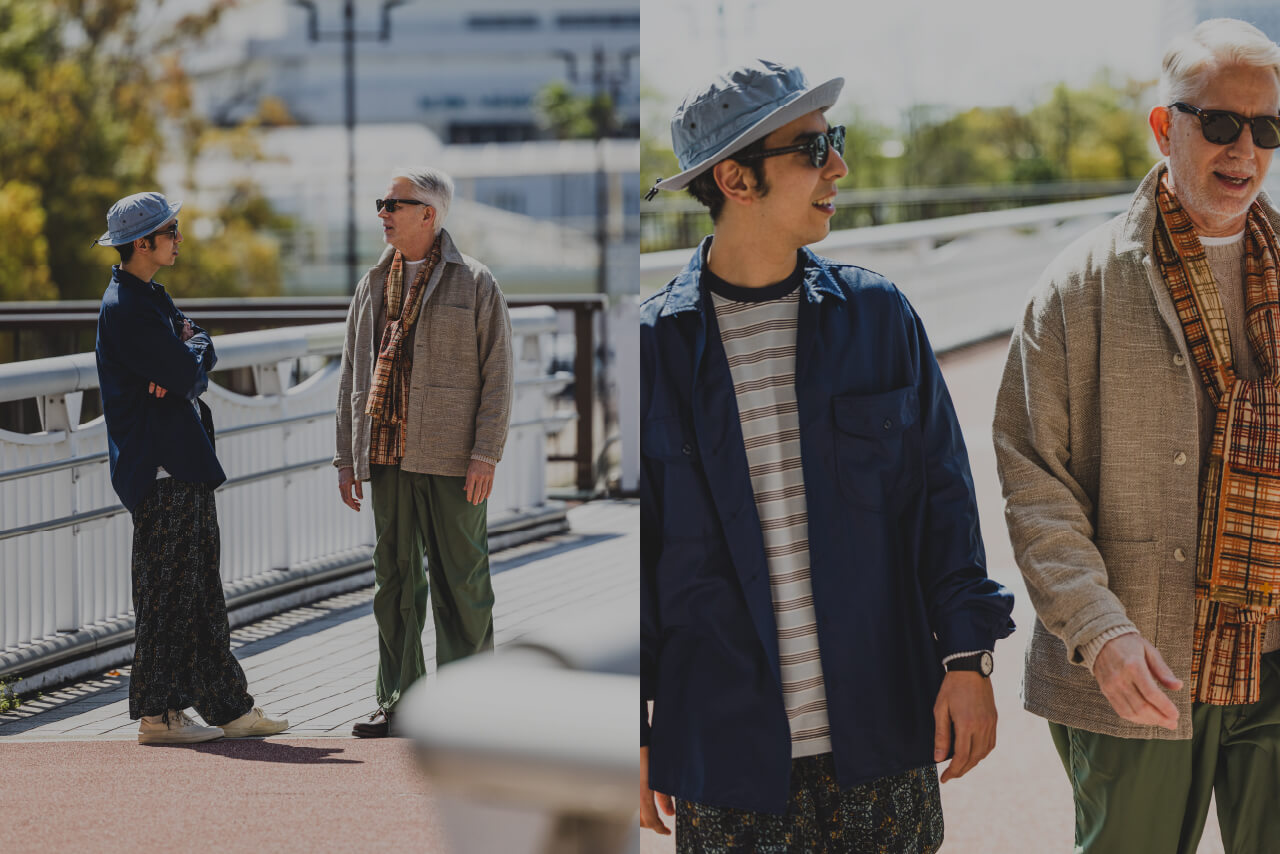 〈BEAMS PLUS〉のアイテムを使った二人の着こなし。