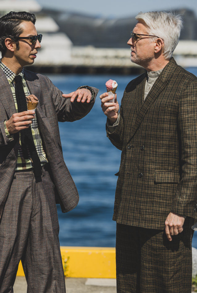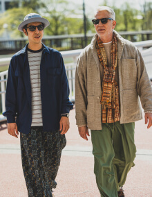 〈BEAMS PLUS〉の世界観を親子二代で表現。