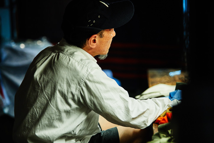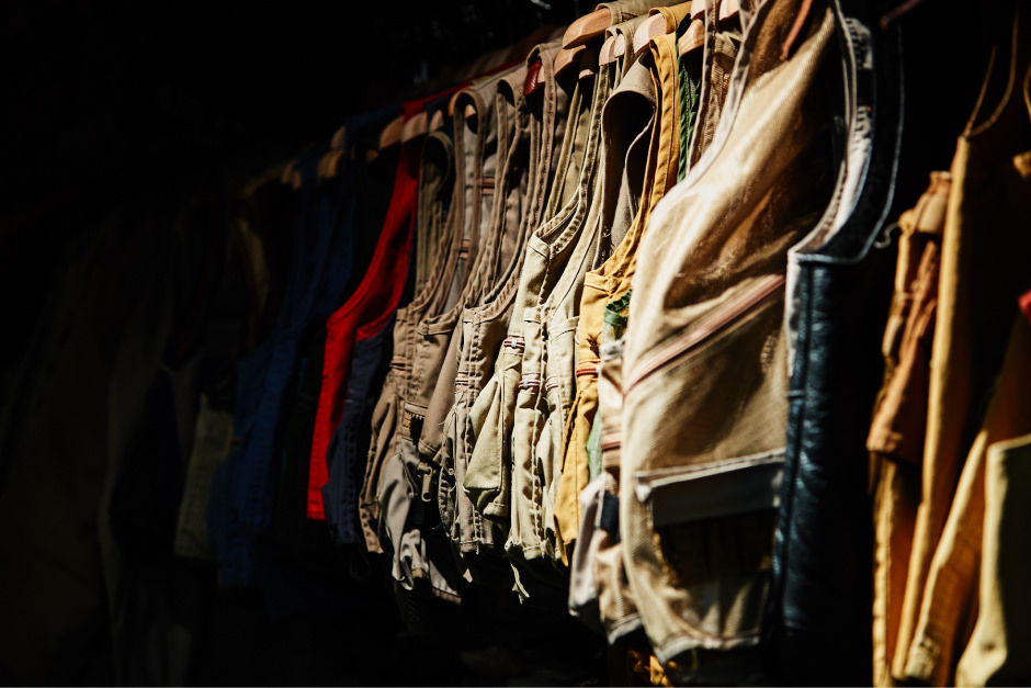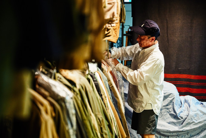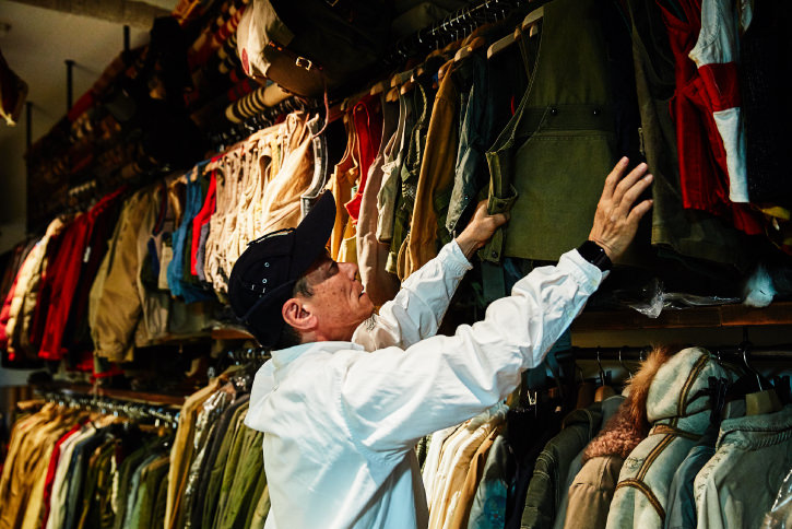 Kobayashi’s atelier is filled with a huge collection of hunting and fishing vests.