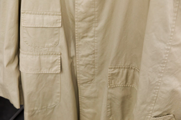 “KAPTAIN SUNSHINE has made balmacaans since its debut in 2013, using the shapes and pocket designs of vintage pieces as references. As we design it to be packable for traveling, our balmacaans are called ‘Traveler Coats’ and made with wrinkle-resistant fabrics or textiles that wrinkle nicely with use. Although the fundamental design has not altered since our very first model, I’ve added some small changes to things like the measurements according to the trend and my personal preference of the time. While we often use Melton or flannel fabric for our winter collection, our balmacaans for the spring collection are made mostly with cotton gaberdine or shirt fabric. The design is definitely inspired by vintage pieces, but I care more about the style and atmosphere than about the details.”