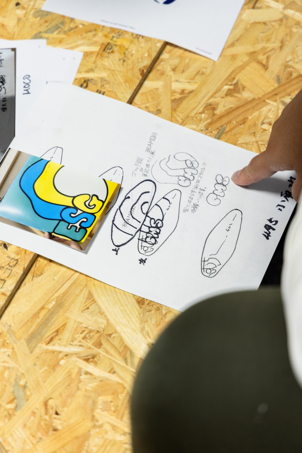 コラボカラーのアイデアは、まず自由な発想でのスケッチ段階からスタート。ビームスと松本氏が顔を合わせ、熱い議論を交わしました。