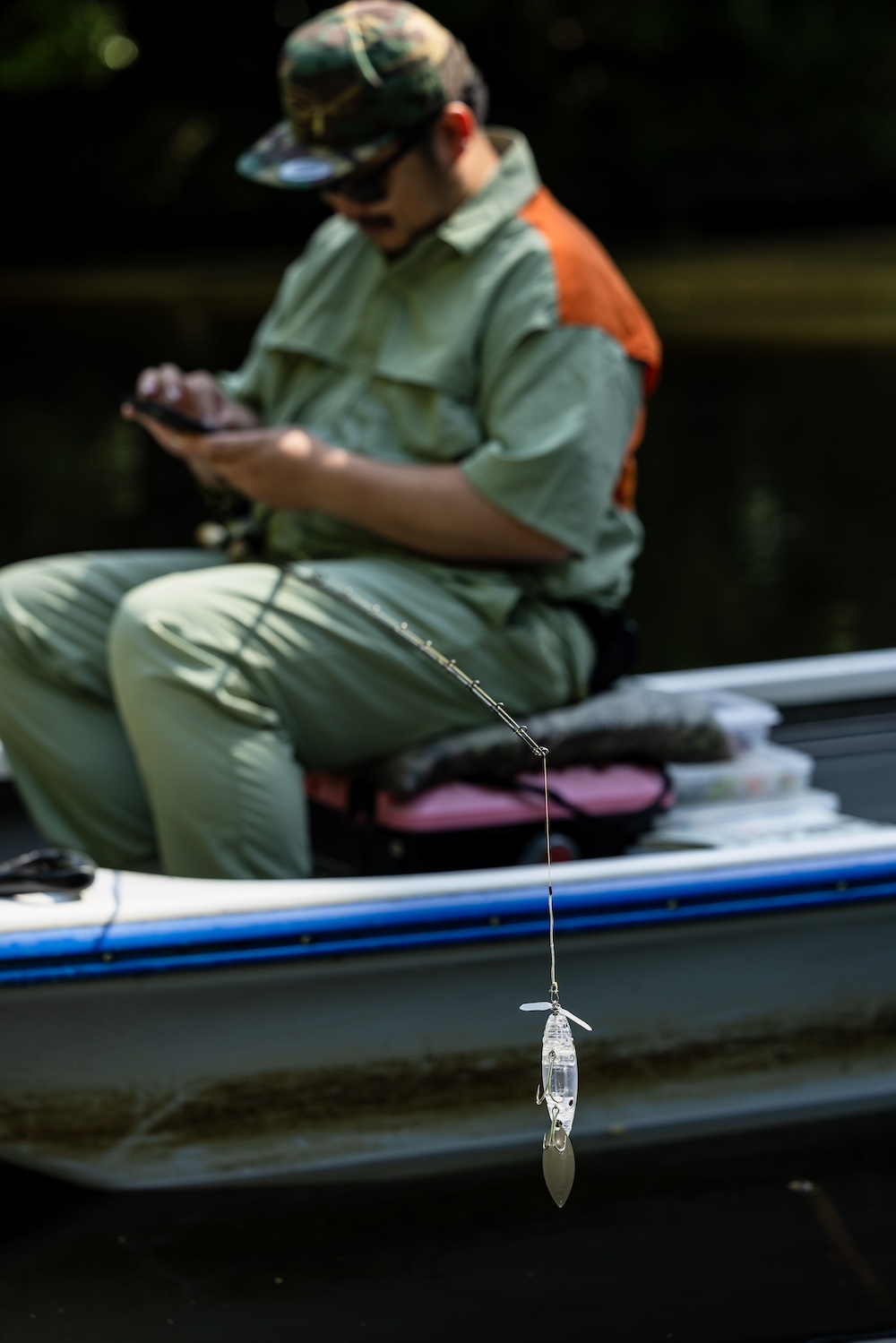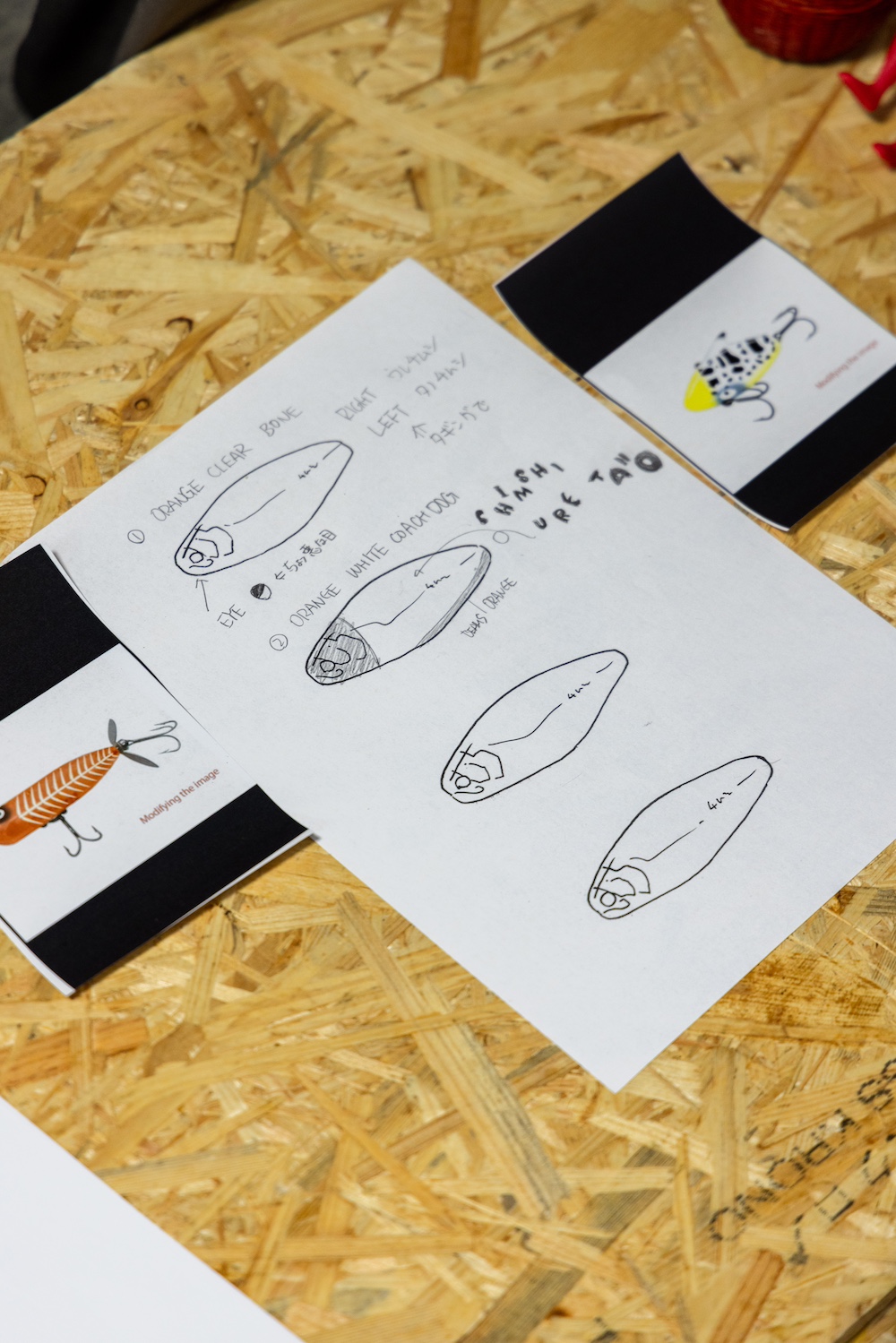 完成までには、フィールドでの実釣テストも欠かせません。実際にルアーを投げては動きを確認し、「この水の色だとどうかな?」「深いのを狙うなら派手な色がいいかな?」と、まさに探りながらの作業。両者の情熱が注ぎ込まれた、まるで生きているかのようなルアーが少しずつ形になっていきました。