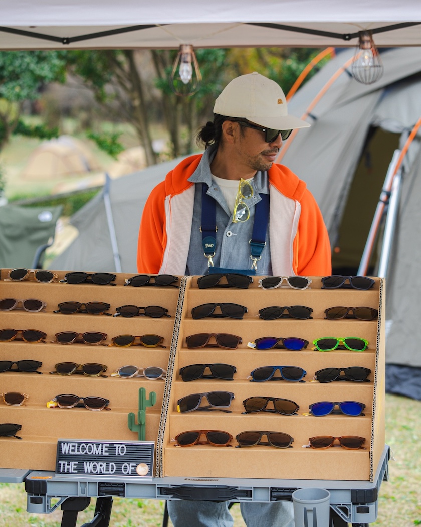 秋のキャンプ場は涼しいイメージがありますが、日差しは意外に強く、時には目を疲れさせてしまうことも…。環境にも配慮した〈SUNSKI〉のサングラスは、強い日差しから参加者の目をしっかりと保護し、快適な外遊びのスタイルを提案してくれました。