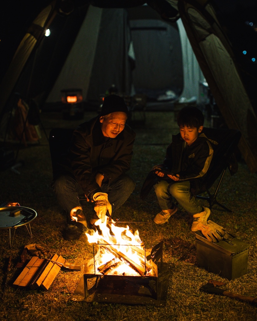 ランタンや焚き火の灯りで照らされるテントには料理が並び、火を囲みながら交わされる会話は時間を忘れてしまうほどあたたかいものに。