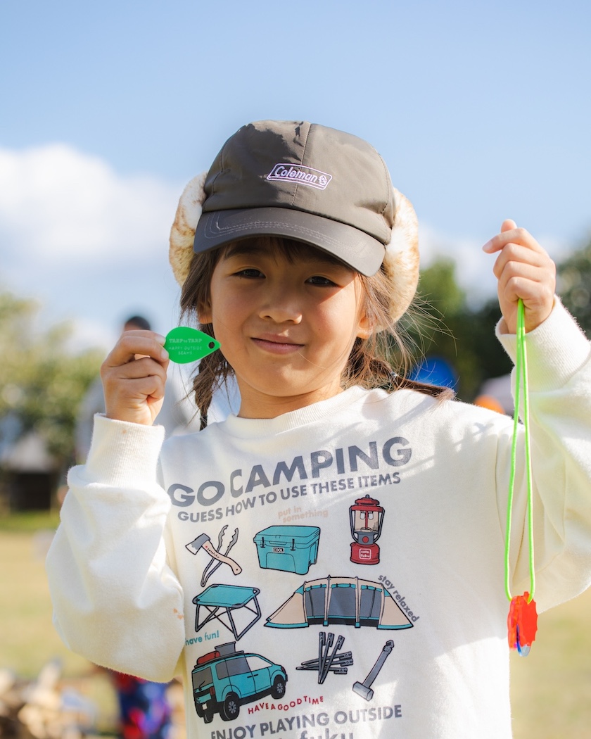 秋のキャンプ場は涼しいイメージがありますが、日差しは意外に強く、時には目を疲れさせてしまうことも…。環境にも配慮した〈SUNSKI〉のサングラスは、強い日差しから参加者の目をしっかりと保護し、快適な外遊びのスタイルを提案してくれました。