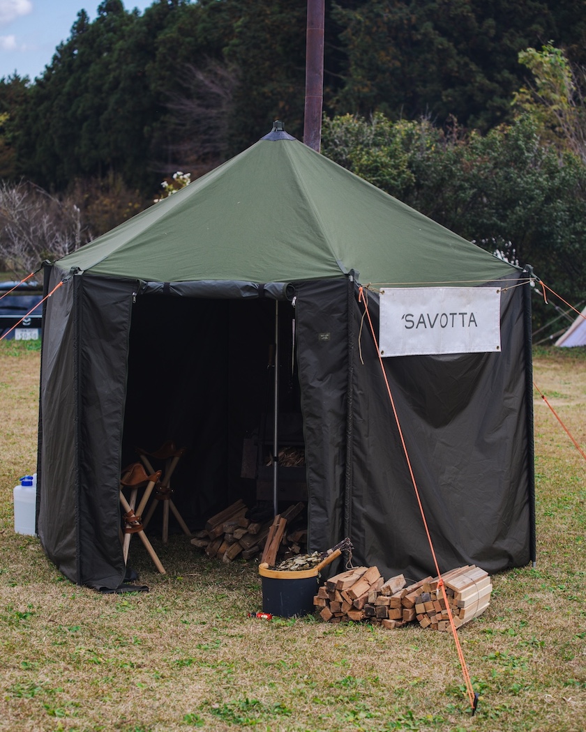 薪ストーブで温められたテント内でじっくりと体を温め、秋の外気でクールダウンする非日常的な体験は、参加者にとって極上のリラックスタイムに。自然の中に身を置きながら「ととのう」感覚を味わえる〈UPI〉のテントサウナで、心身ともにリフレッシュ。
