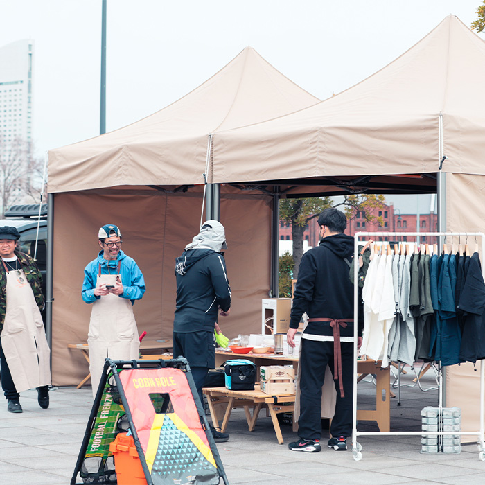 「モルック」や「ラダーボール」など、誰でも気軽に楽しめる外遊びを体験及びチャレンジできるエリアを展開します。ビームススタッフが遊び方をサポートするので、初心者でも安心して楽しめます。また、キッチンカーが出店し、クラフトビールをはじめとするドリンクを片手にくつろげる、チルスペースもプロデュースします。