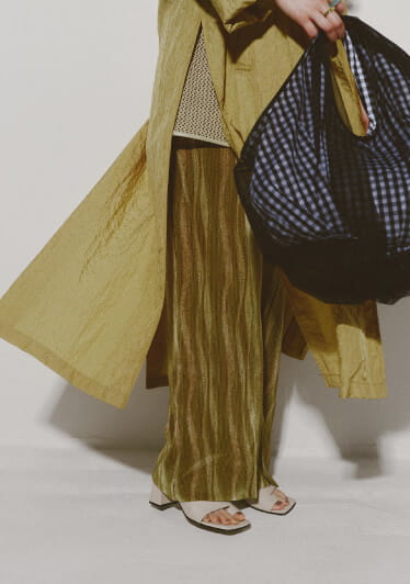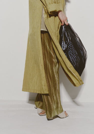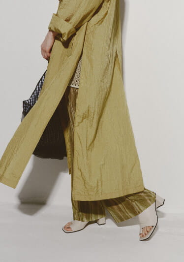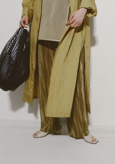 風や光を反映する、シアーにフェイクレザー、ベロアと、滑らかでセンシュアルな質感の生地を集めました。ブラウン、イエロー、グリーン、ブルーと、優しくレイドバックしたカラーラインナップをプラス。モダンでセンシュアルなムードのコツは、カットアウトで叶うヘルシーな肌見せや、シルバー&ゴールドのジュエリーの硬質な輝きをポイントに。最後はあなたらしいスタイリングをプラスして、ワクワクした気持ちを“Cozy & Chic” にまとめ上げて。