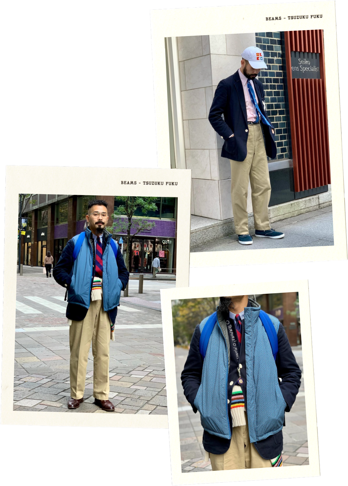 柳井さん(ゆずる人):購入時に自分が惹かれていた「シティボーイ」というワードをBEAMSの中で“スタイル”として当時から体現されていた若山さん。ご自身のキャラクターに合ったサイズバランスや小物使いでとにかく洒落てる方だな~と思って見ていました。今回アイテムを選んだ際、直感的に若山さんのブレザールックを見たい!と思い指名。アメリカルーツのウェアやスタイルが得意なイメージがあるのでお手のものだと思います!